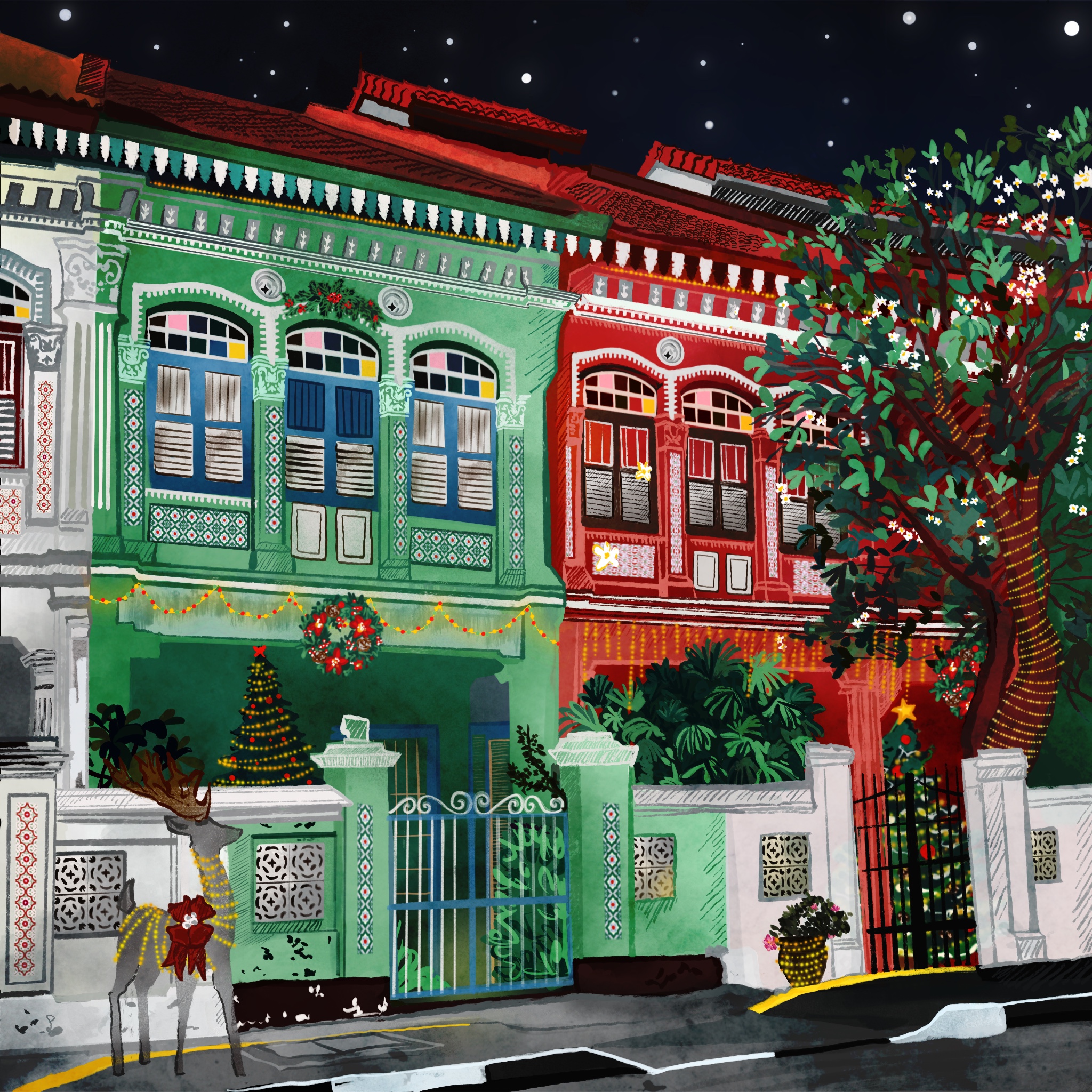 I was comissioned to create festive Christmas illustrations inspired by the timeless beauty of Singaporean shophouses in the Joo Chiat Area!
